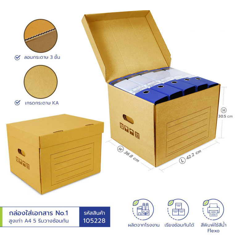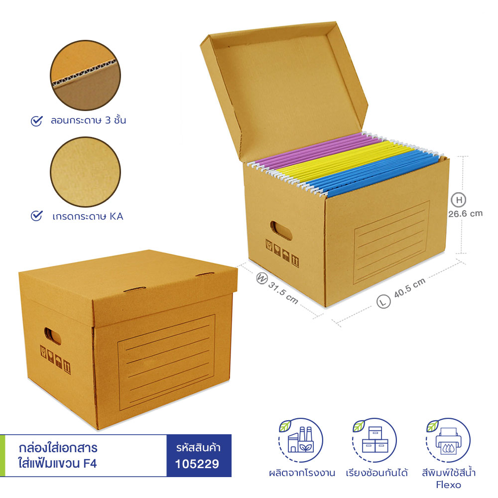 โดยตัวกล่องใส่เอกสารจะมีความแข็งแรง ทนทาน และสามารถจัดเรียงซ้อนได้ง่ายกว่าแบรนด์ทั่วๆ ไป และมีข้อดีกับประโยชน์ใช้สอยต่างๆ ดังต่อไปนี้
