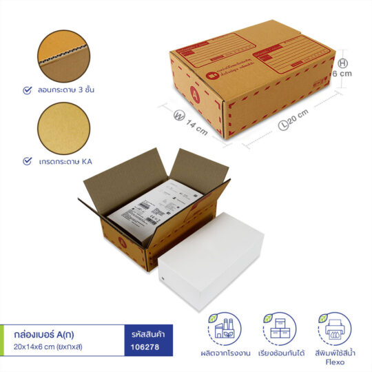 - ผลิตจากกระดาษลูกฟูก 3 ชั้น สีน้ำตาลธรรมชาติ(KT) – No.3 ใส่กระดาษ A4 ได้ 1 แถวสูง 4 ริม