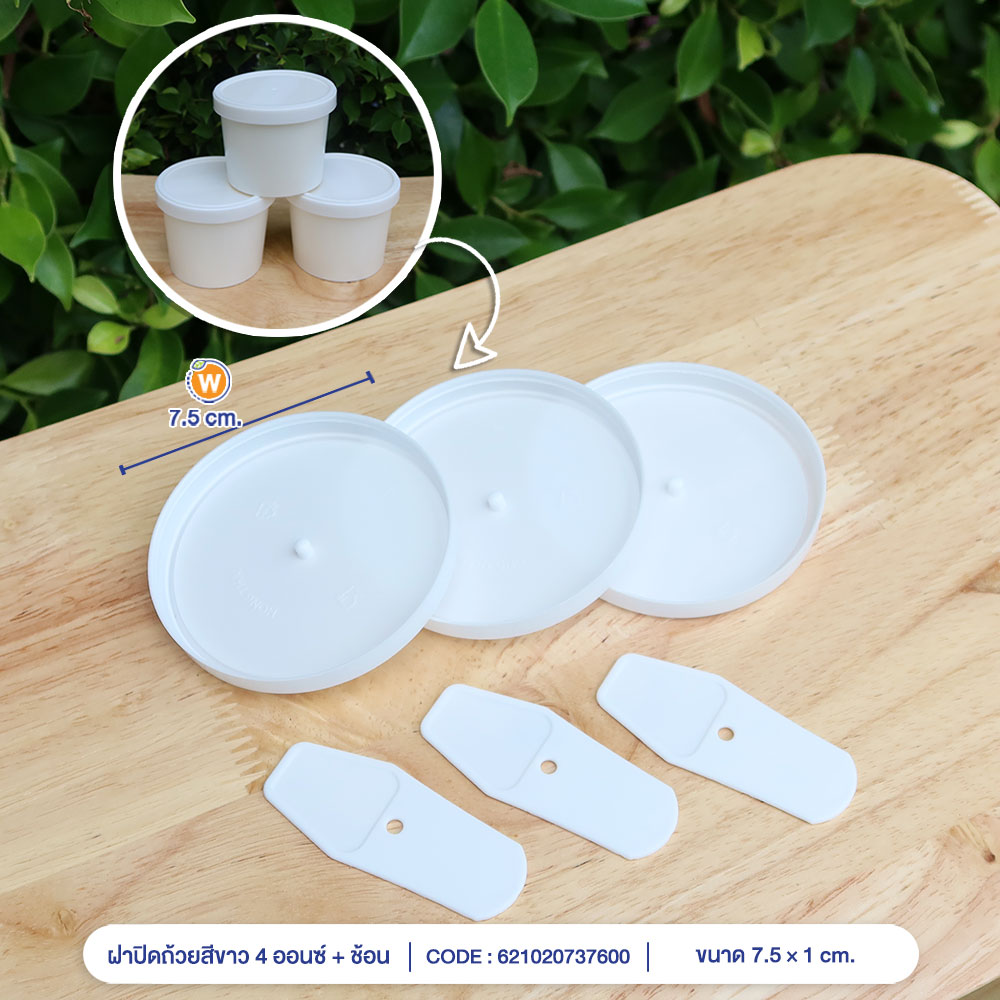 - ฝาปิดถ้วยไอศครีมสีขาว 4 ออนซ์ พร้อมช้อน