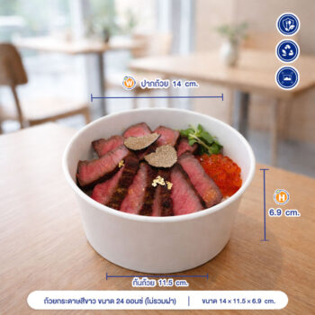 ถ้วยกระดาษ ขนาด 650 ml / 24oz (ไม่รวมฝา) | 14 | 11.5 | 6.9 | ขั้นต่ำ 800 ใบราคาเริ่มต้นที่ ฿2.34 / ใบราคารวม VAT | |