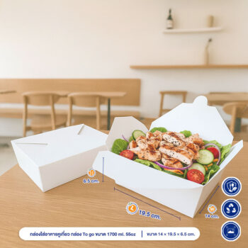 1 กล่องใส่อาหารหูเกี่ยว กล่อง To go ขนาด 1,700 ml./ 55 oz. 14 19.5 6.5 ขั้นต่ำ 298 กล่องราคาเริ่มต้นที่ ฿5.88 / กล่องราคารวม VAT
