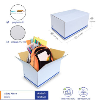 กล่องไปรษณีย์ ขนาด KERRY size M 43x27x20 cm (ยxกxส) | 43 | 27 | 20 | ขั้นต่ำ 25 ใบราคาเริ่มต้นที่ ฿18.08 / ใบราคารวม VAT | |