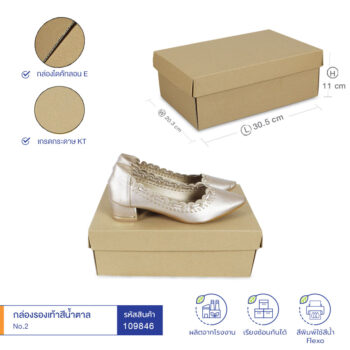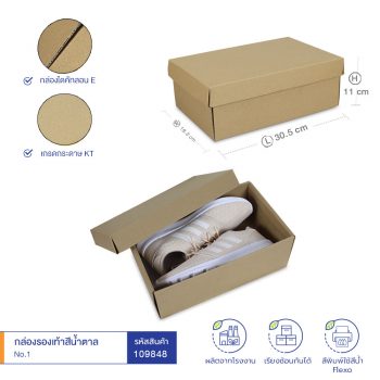 กล่องรองเท้าสีน้ำตาล No.1 | 30.5 | 18.3 | 11 | ขั้นต่ำ 50 ใบราคาเริ่มต้นที่ ฿10.48 / ใบราคารวม VAT | |