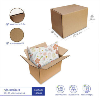 กล่องกระดาษลูกฟูก เบอร์ C+9 30x20x20 cm. | 30 | 20 | 20 | ขั้นต่ำ 25 ใบราคาเริ่มต้นที่ ฿7.25 / ใบราคารวม VAT | |