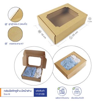 กล่องไดคัทหูช้าง มีหน้าต่าง Size M | 25 | 18 | 7 | ขั้นต่ำ 50 ใบราคาเริ่มต้นที่ ฿15.33 / ใบราคารวม VAT | |