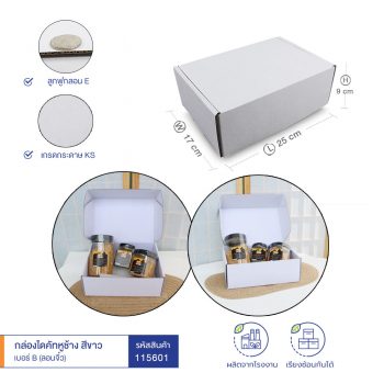 กล่องไดคัทหูช้าง สีขาว เบอร์ B (ลอนจิ๋ว) | 25 | 17 | 9 | ขั้นต่ำ 20 ใบราคาเริ่มต้นที่ ฿14.85 / ใบราคารวม VAT |