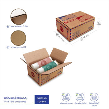 กล่องเบอร์ 00 (AAA) 14×9.75×6 cm (ยxกxส) สีน้ำตาลธรรมชาติ(KT) | 14 | 9.75 | 6 | ขั้นต่ำ 25 ใบราคาเริ่มต้นที่ ฿1.83 / ใบราคารวม VAT | |