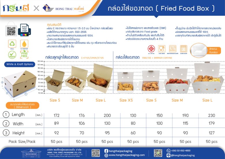 กล่องไก่ทอด กล่องหมูทอด (Size S) ขนาดเดียวกับร้าน เมตตาหมูทอด