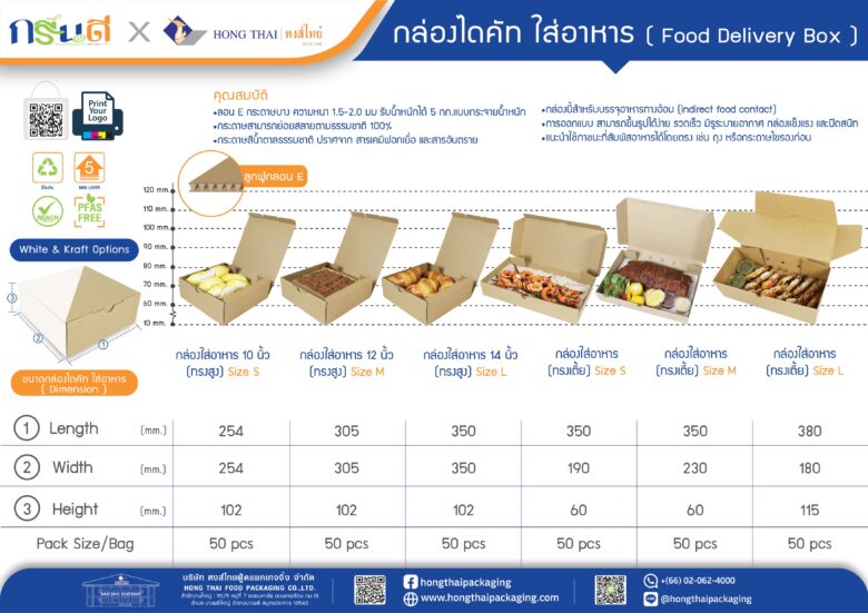 ดีไซน์บรรจุภัณฑ์ที่สวยงาม พิมพ์โลโก้/พิมพ์ลาย กล่องใส่อาหาร
