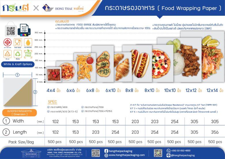 - สามารถสัมผัสอาหารได้โดยตรง เป็นกระดาษแบบ Food Grade