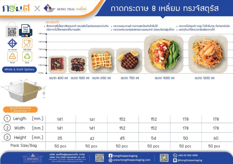 รับผลิตจำนวนมาก ถาดกระดาษใส่อาหารที่เป็นบรรจุภัณฑ์ที่เหมาะกับผู้ประกอบการร้านอาหารแนวสตรีทฟู้ด ถาดมีการเคลือบ PE 2 ด้าน โดยระบบที่ใช้พิมพ์คือระบบ Offset พิมพ์เต็มพื้นที่ได้ถึง 6 สี