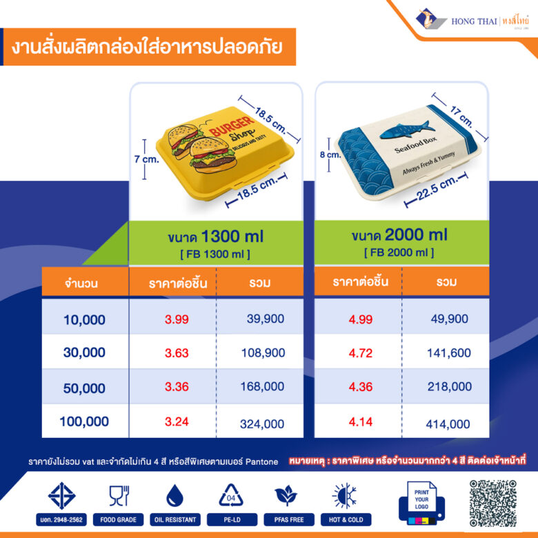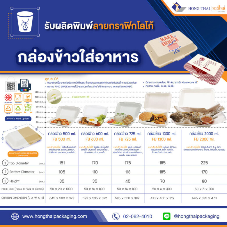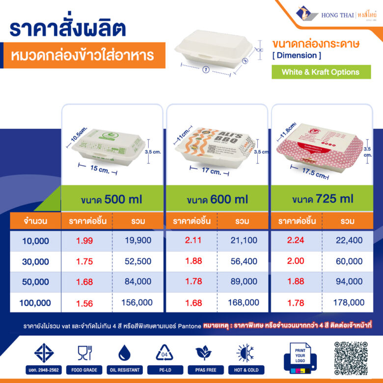 โรงงานผลิตบรรจุภัณฑ์อาหาร เคลือบ Food Grade ระบบพิมพ์ Offset 6 สี บริการรับผลิตกล่องอาหารทุกประเภท เหมาะสำหรับร้านอาหาร ร้านอาหารแฟรนไชส์ และธุรกิจส่งอาหาร รองรับการผลิตกล่องข้าว กล่องใส่อาหารพร้อมพิมพ์โลโก้และแบรนด์ตามต้องการ