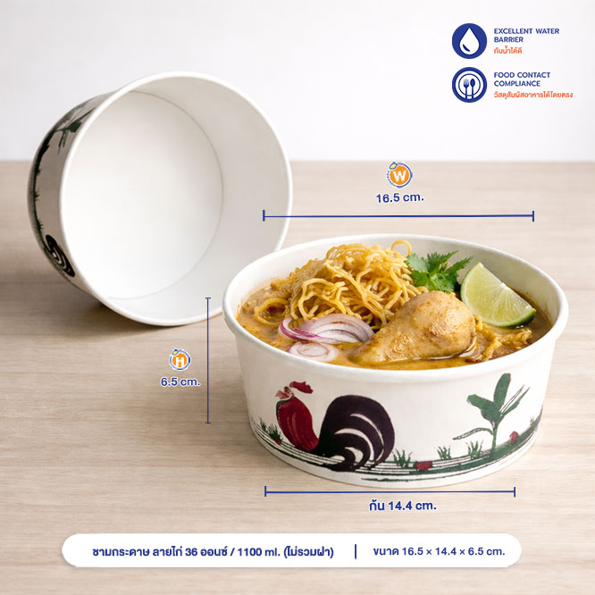| การใช้งาน | ใช้บรรจุของร้อน ก๋วยเตี๋ยว สลัดผัก ลูกชิ้นทอด เหมาะกับผู้ประกอบการ |