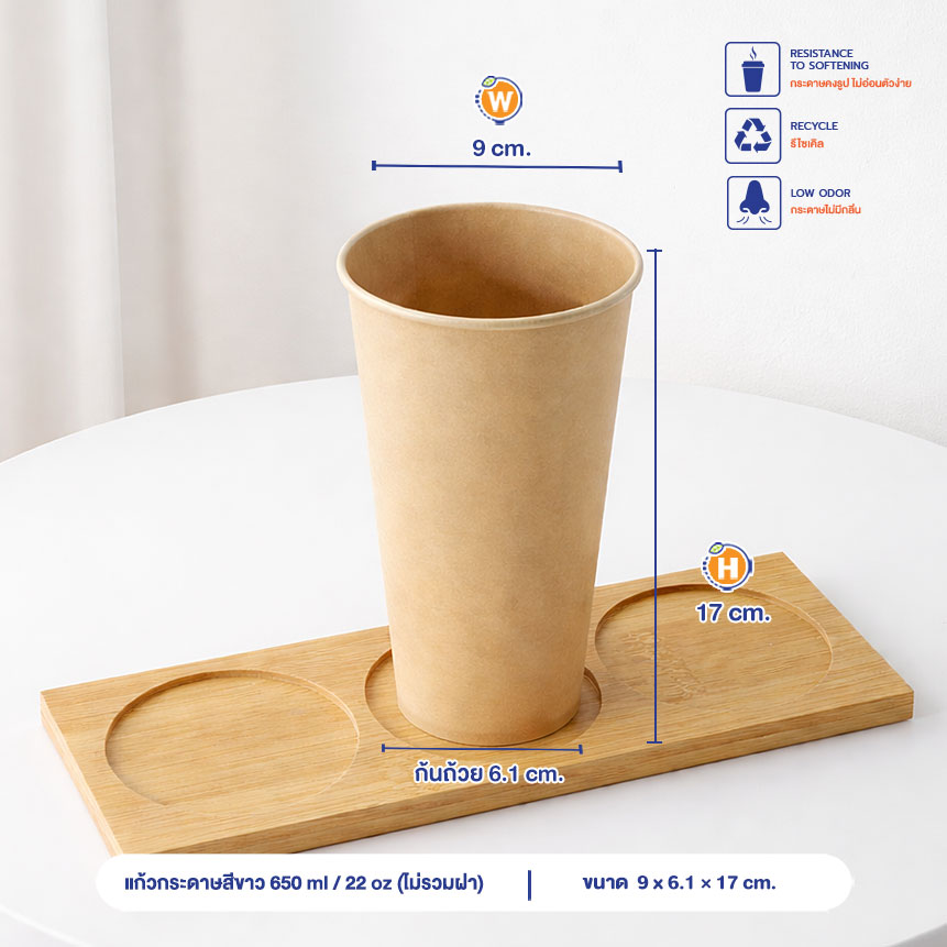 แก้วกระดาษคราฟท์ 650 ml / 22oz (ไม่รวมฝา)