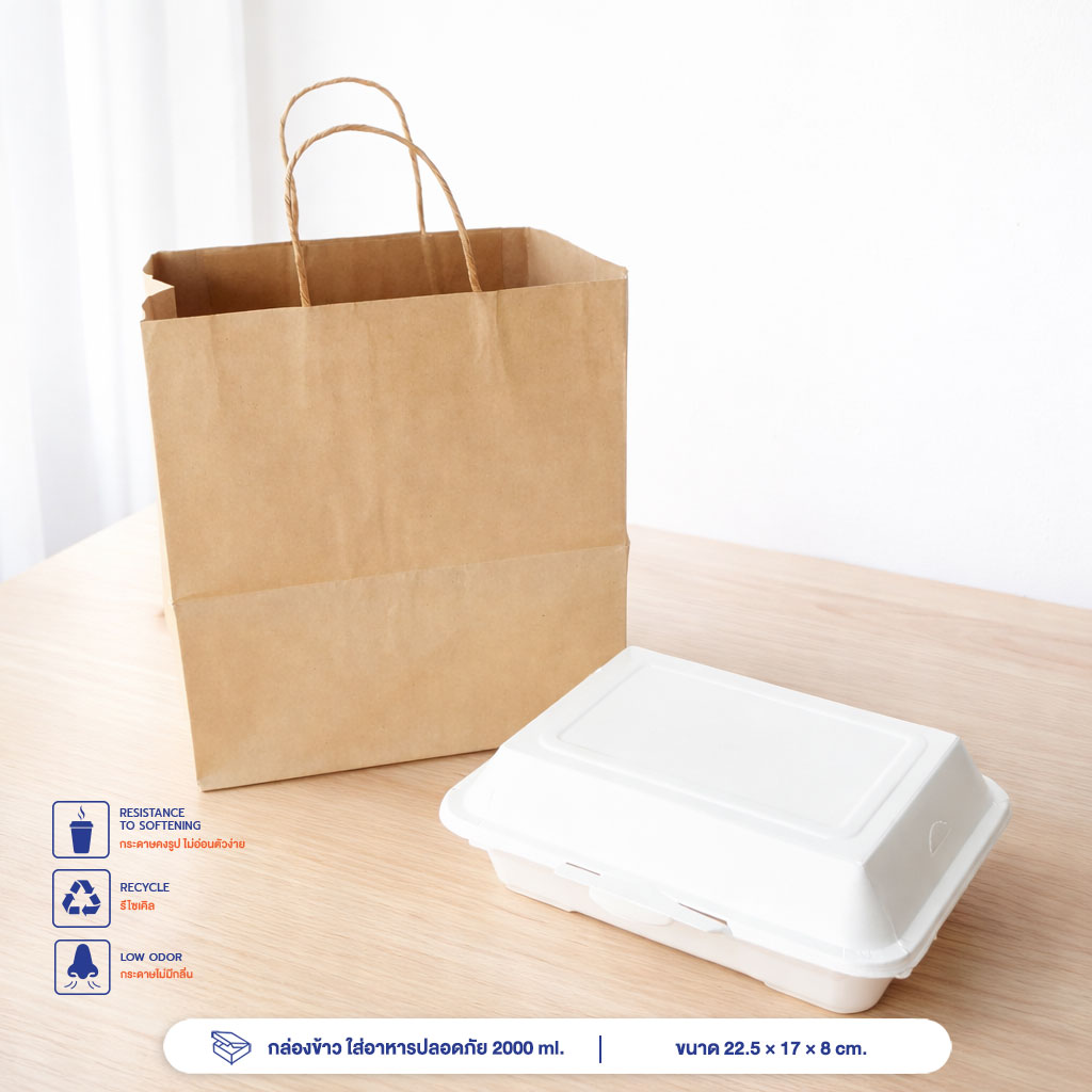 กล่องกระดาษใส่อาหารปลอดภัย พร้อมฝาปิด ใช้สำหรับข้าวและกับข้าว 3-4 อย่าง ปลาเผาขนาดเล็กถึงกลาง