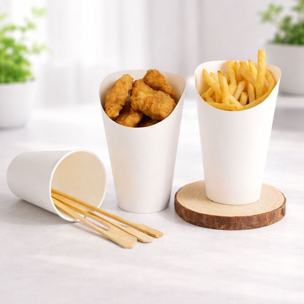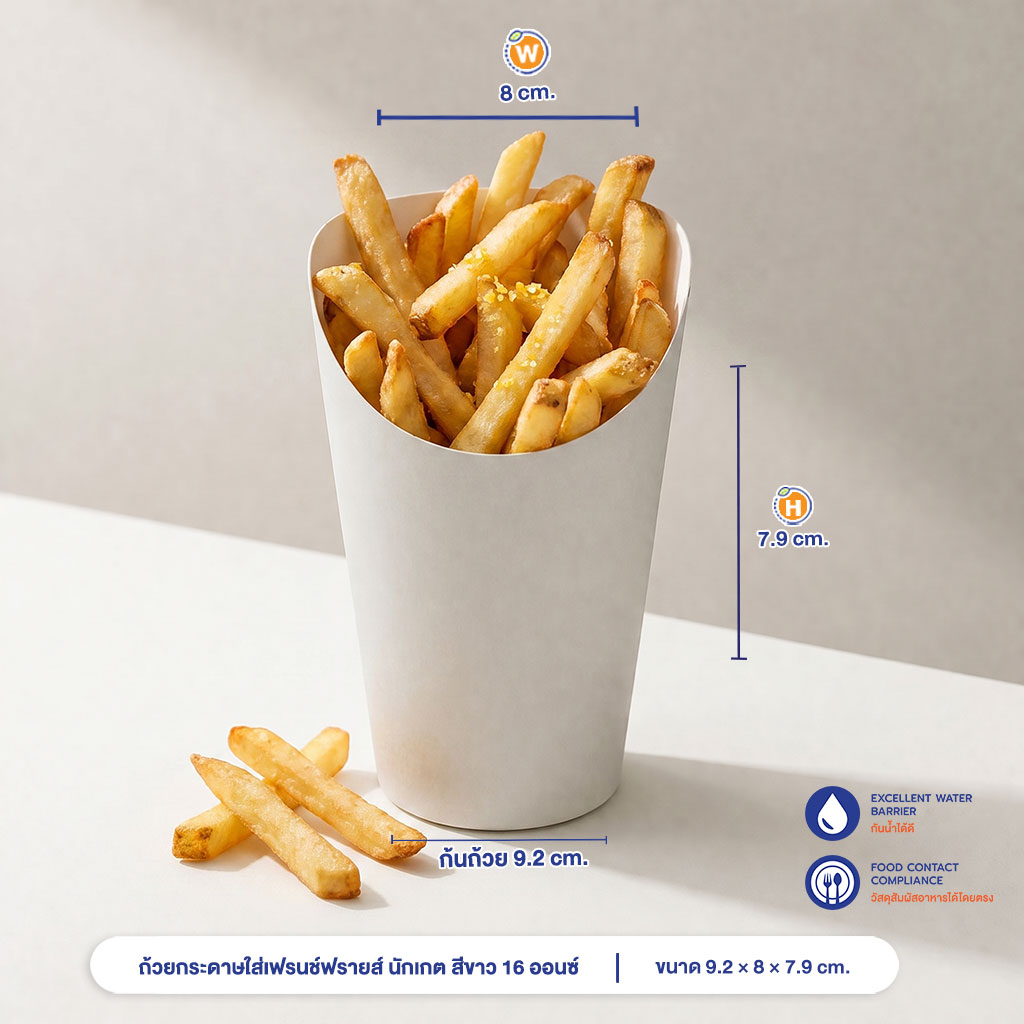 | การใช้งาน | ใช้บรรจุเฟรนช์ฟรายส์ นักเกต ลูกชิ้นทอด เหมาะกับผู้ประกอบการ |