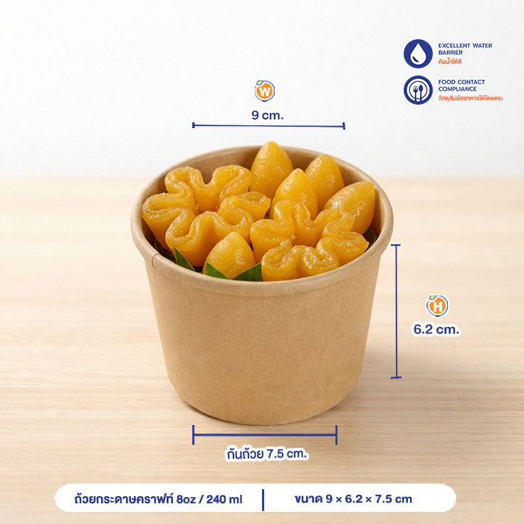 | การใช้งาน | ใช้บรรจุขนมหวาน ไอศครีม ลูกชิ้นทอด ซุปร้อน เหมาะกับผู้ประกอบการ |