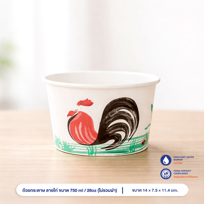 ถ้วยกระดาษ ลายไก่ ใช้สำหรับของร้อนก๋วยเตี๋ยว ราดข้าว สลัดผักต่างๆ