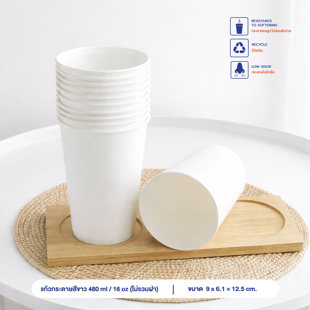 แก้วกระดาษ สีขาว 480 ml / 16oz (ไม่รวมฝา)