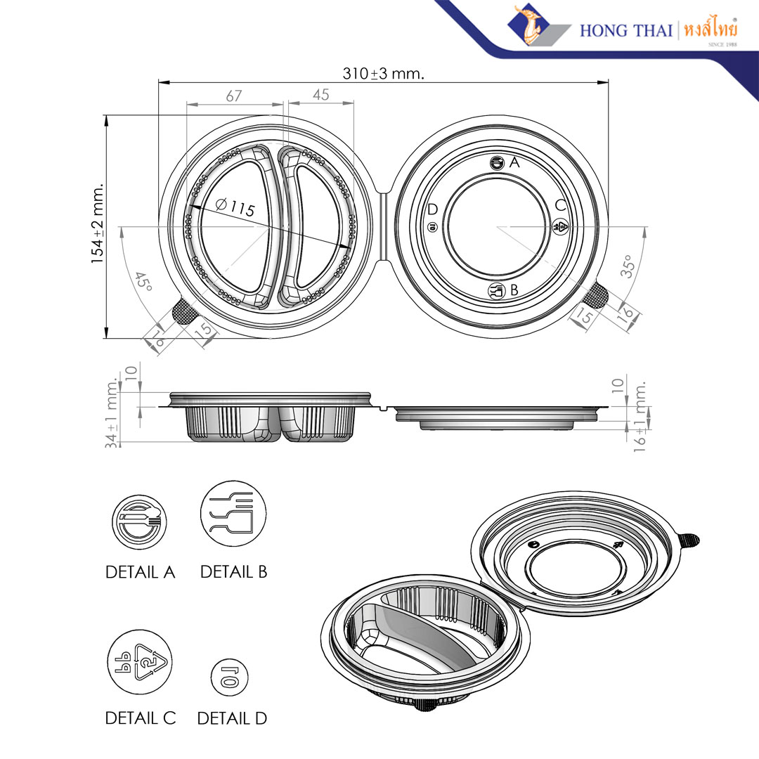 ฝา(PP) 2 ชั้น 2 ช่อง(แยกข้าว-กับข้าว)ใช้กับถ้วย 26oz , 28oz และ 38oz