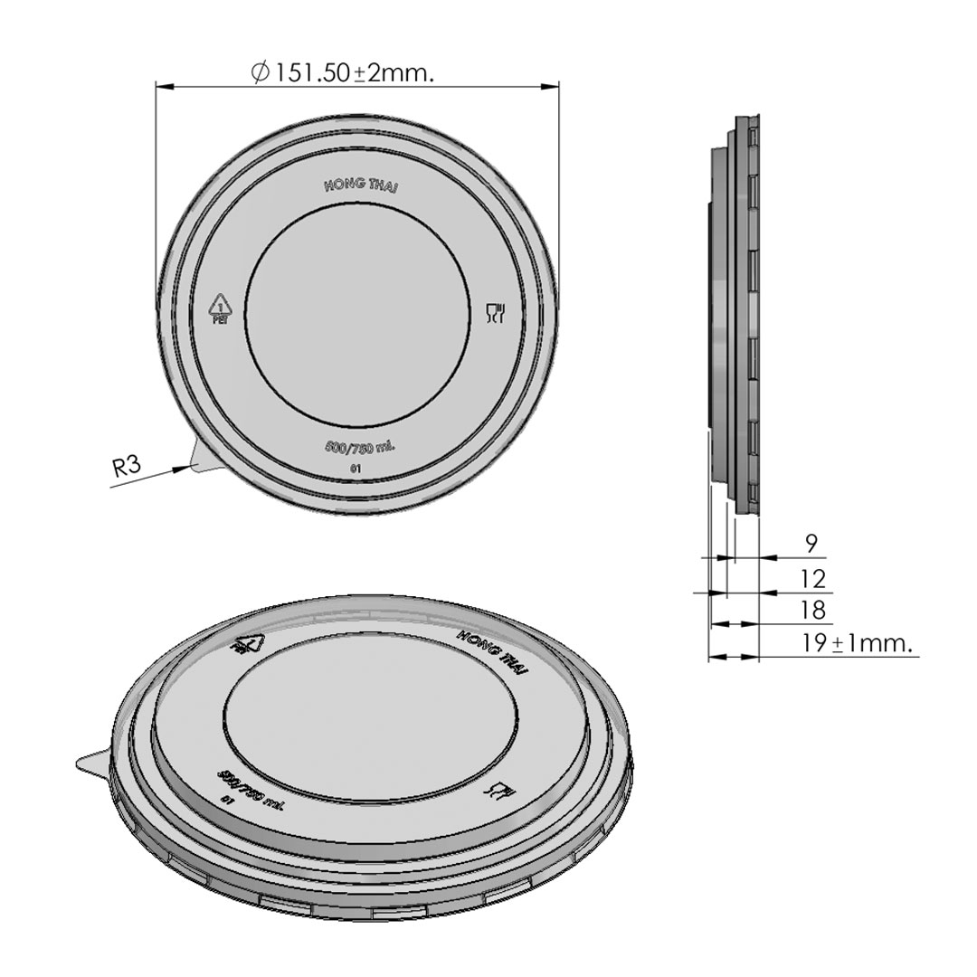 ฝาพลาสติกใส(PET) ใช้กับชามขนาด 500,750 ml (ขายเฉพาะฝา)