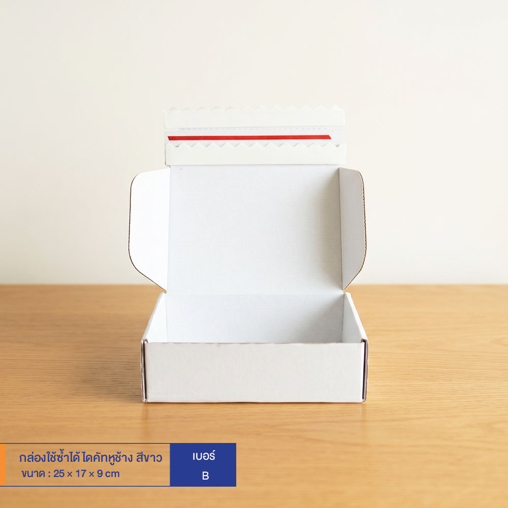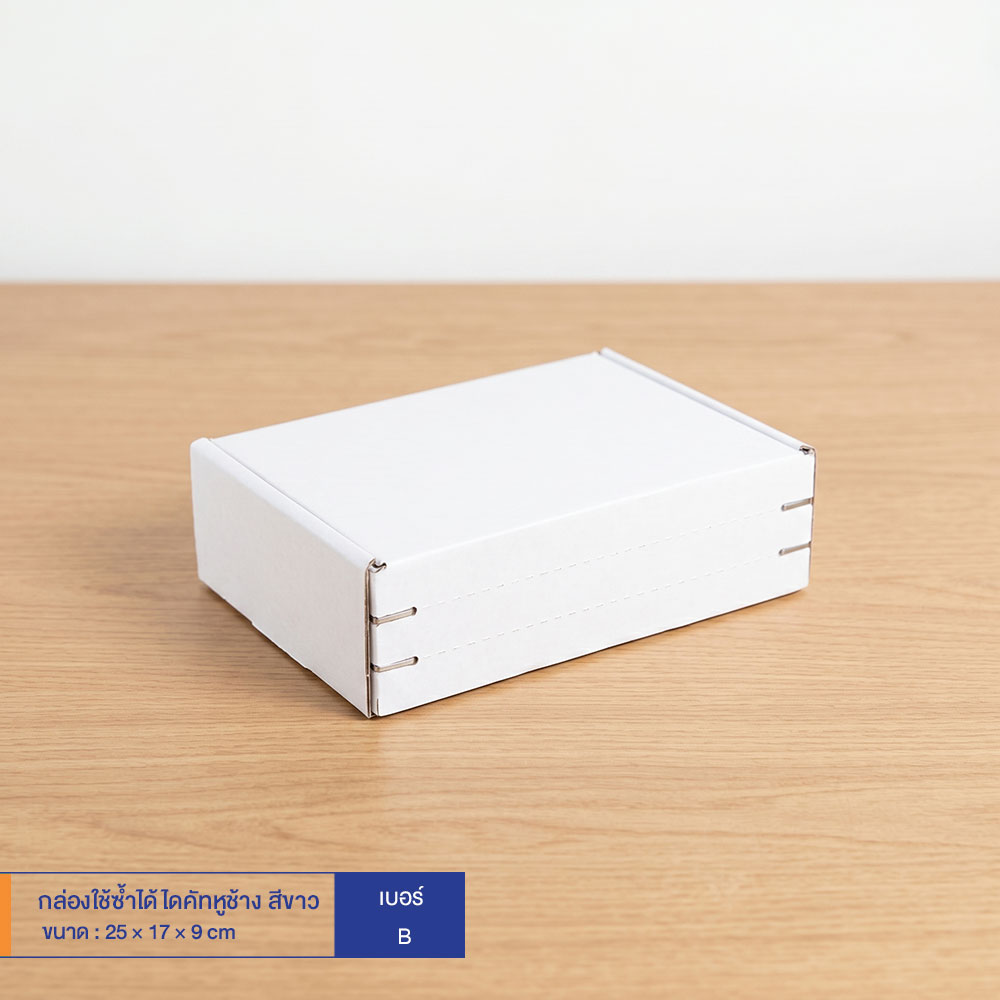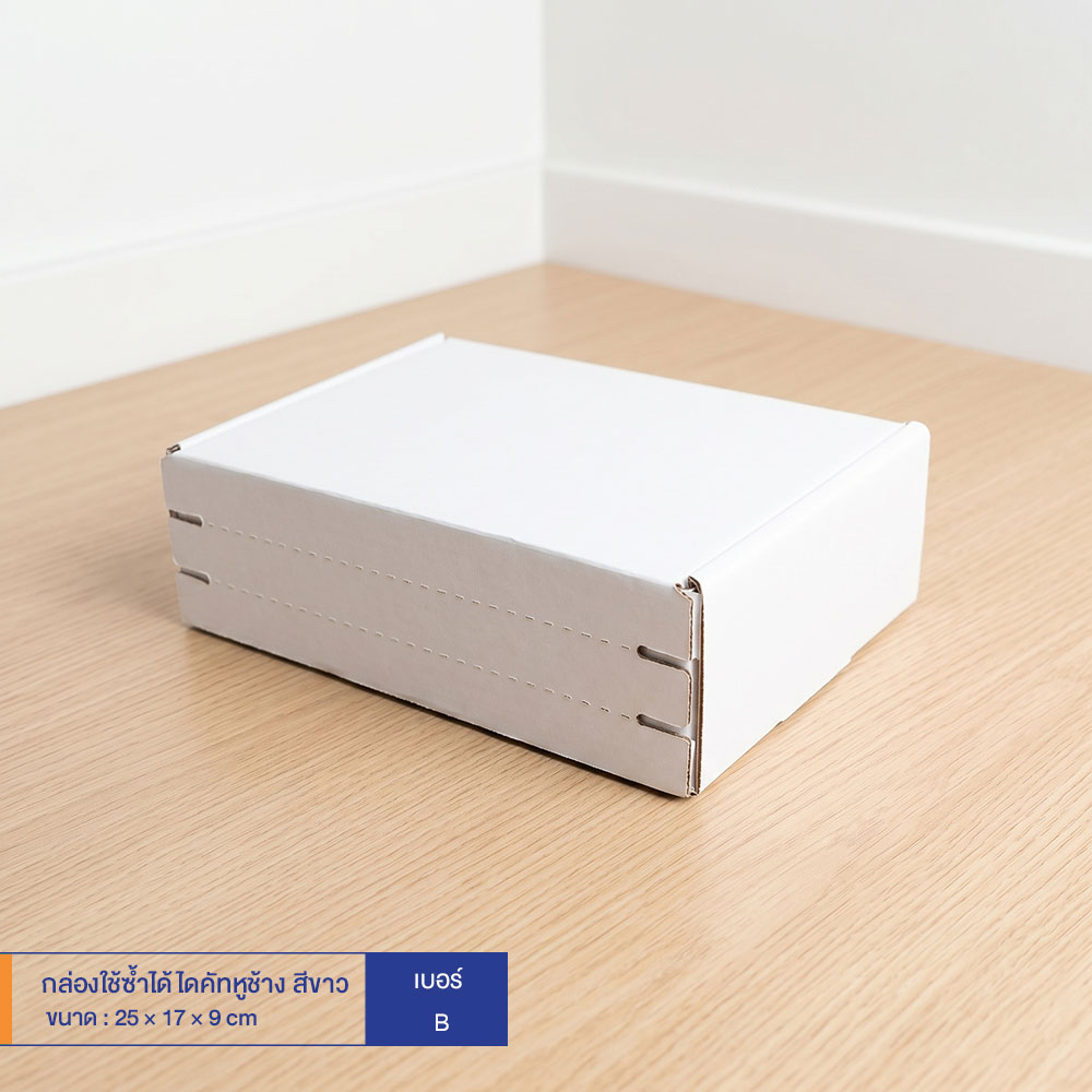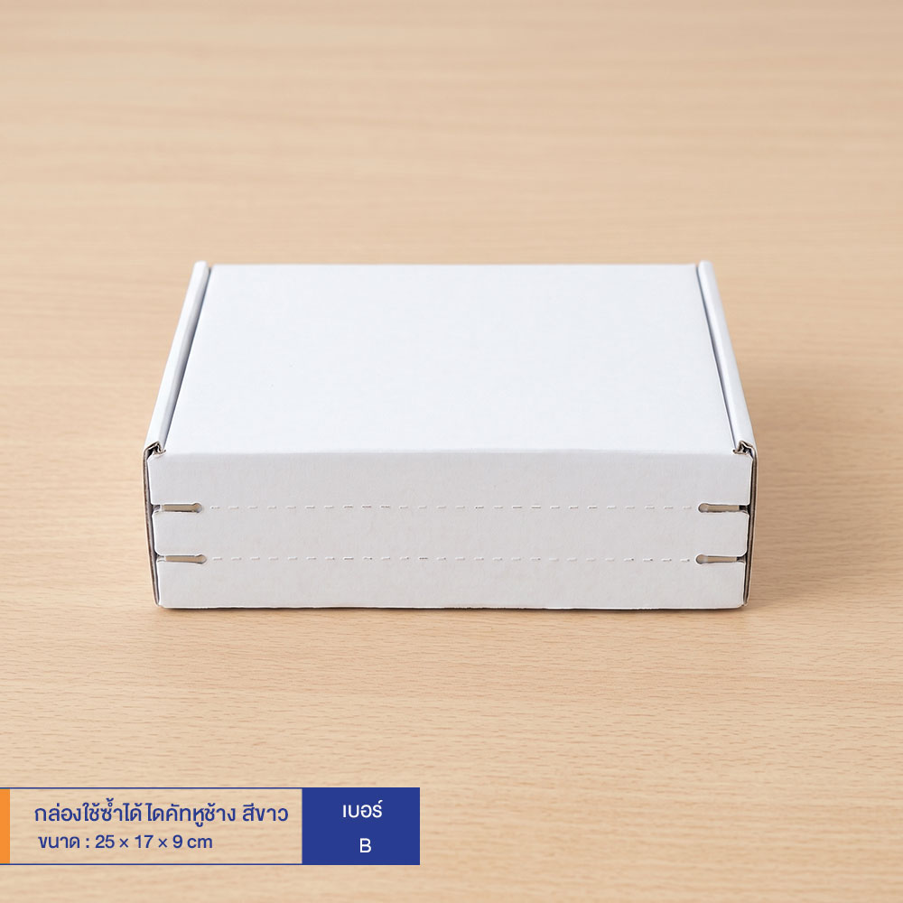 กล่องใช้ซ้ำได้ แบบไดคัทหูช้างสีขาว เบอร์ B (ลอนจิ๋ว)