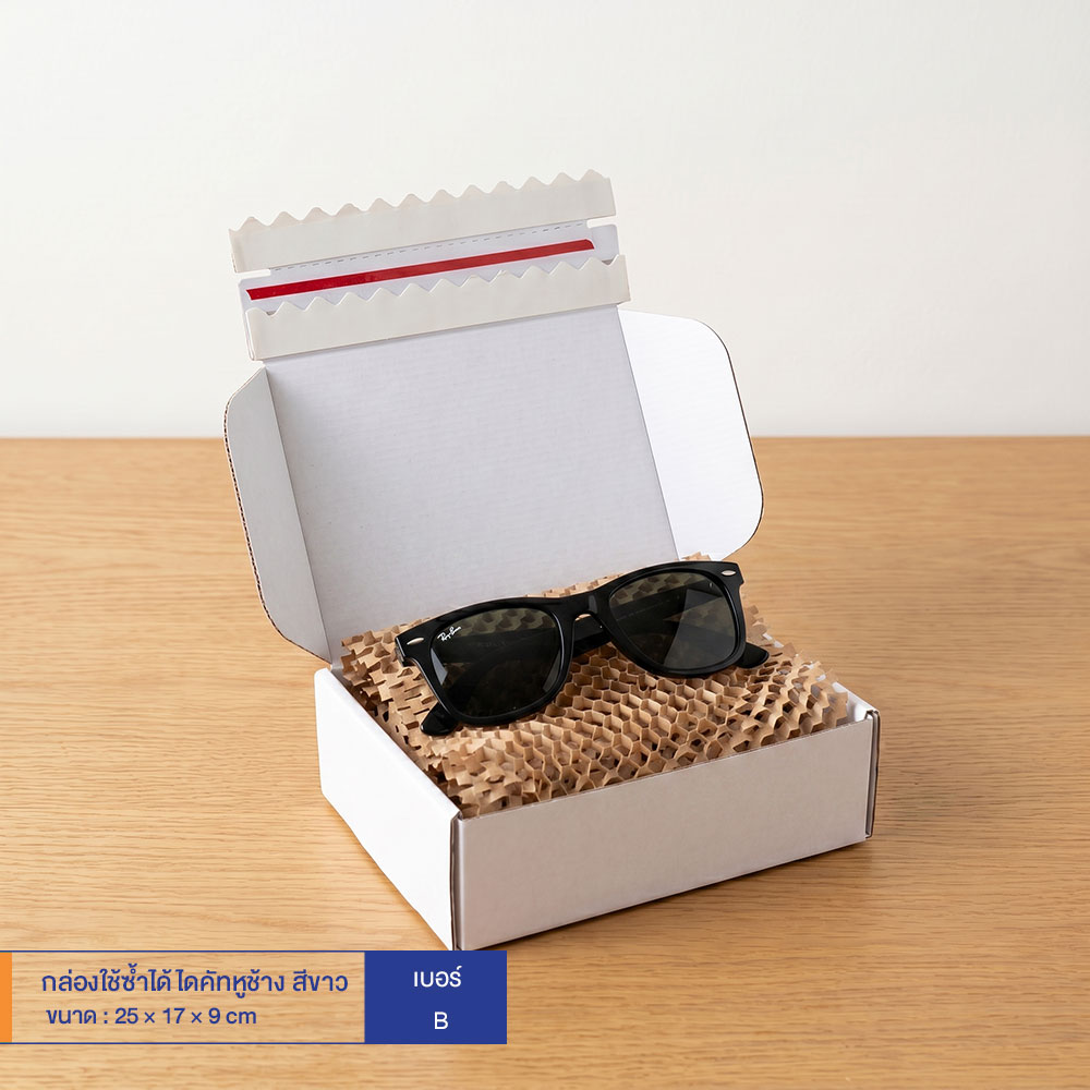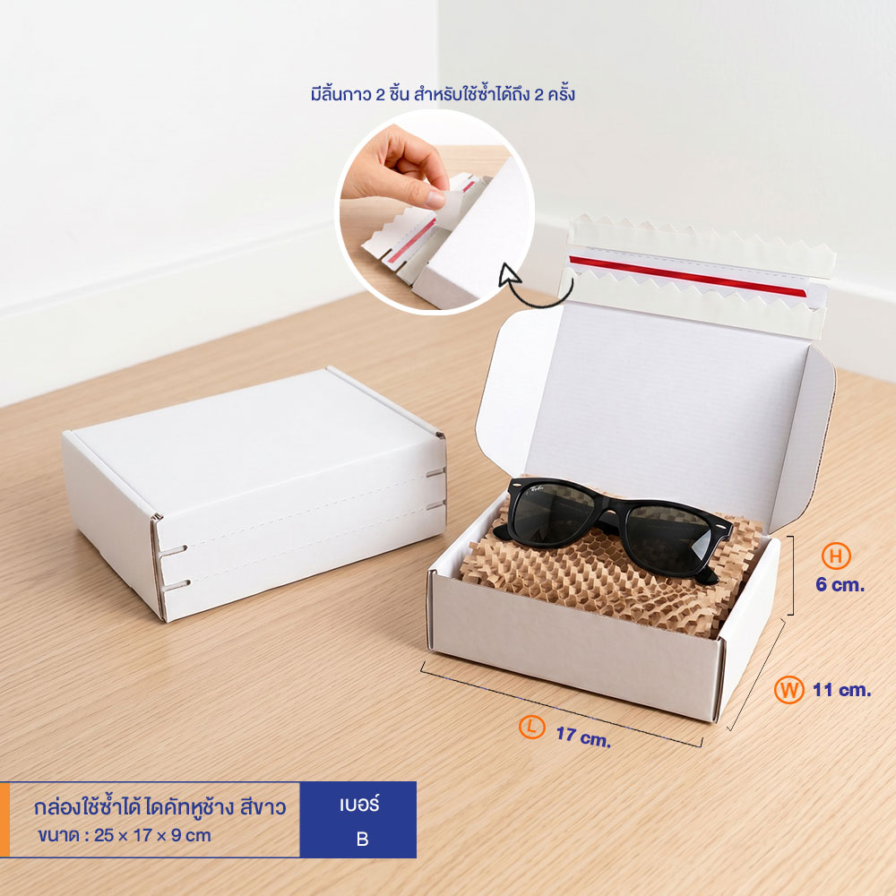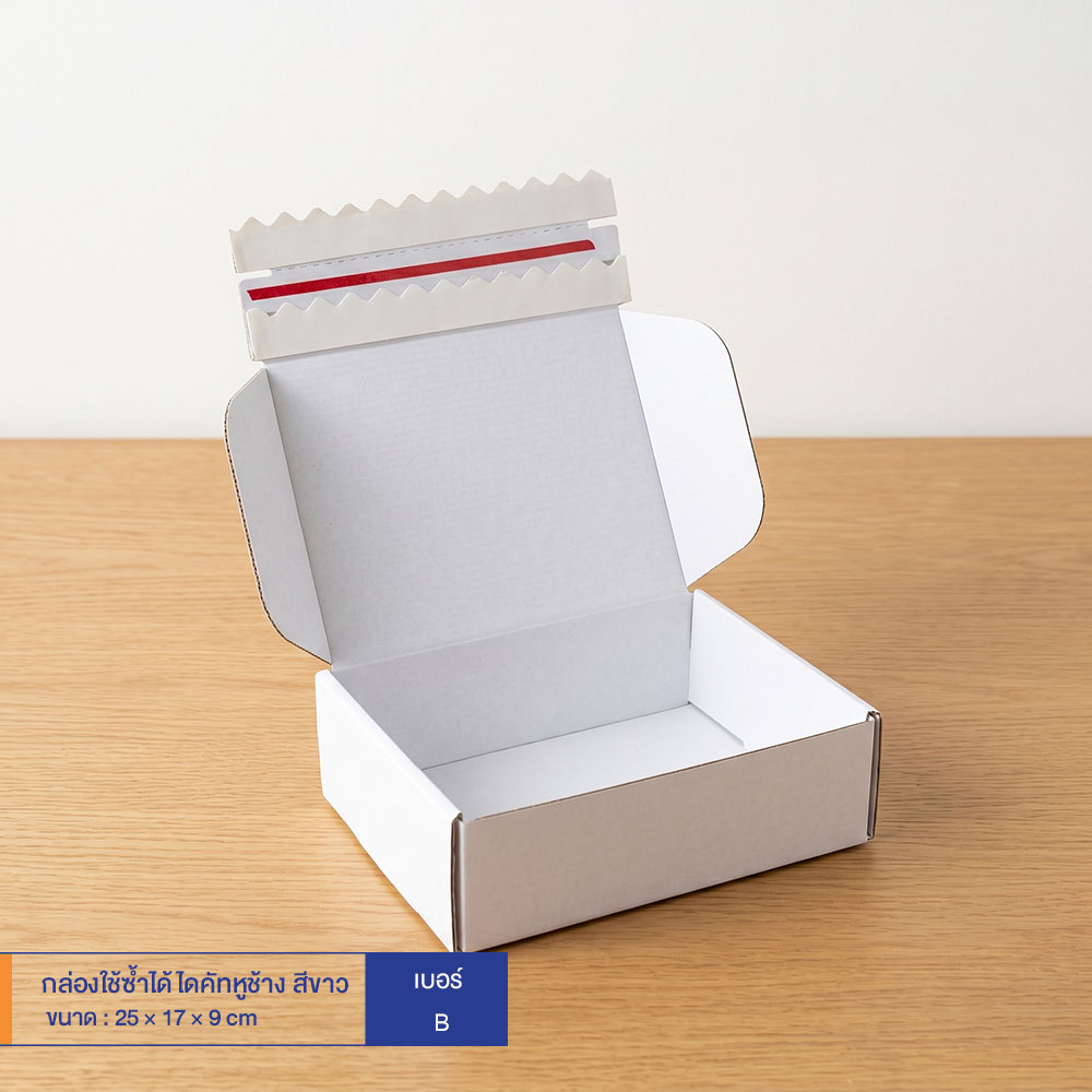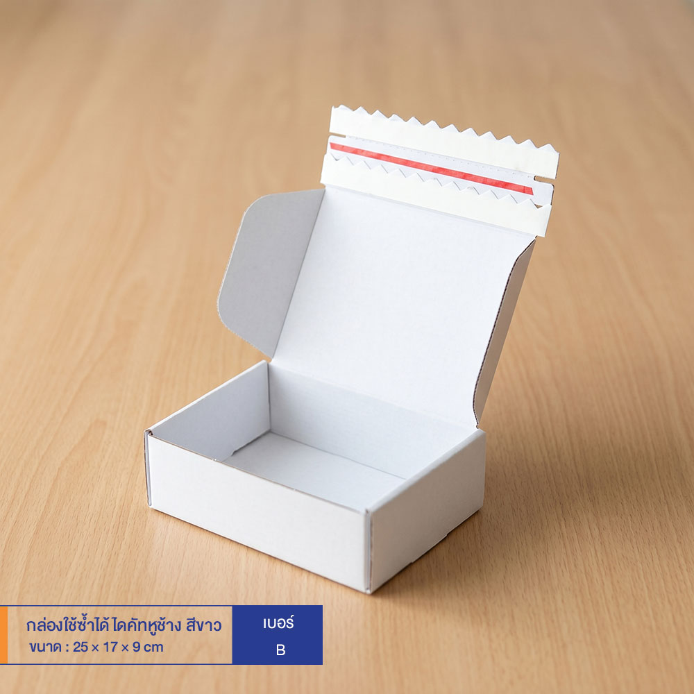 กล่องใช้ซ้ำได้ แบบไดคัทหูช้างสีขาว เบอร์ B (ลอนจิ๋ว)
