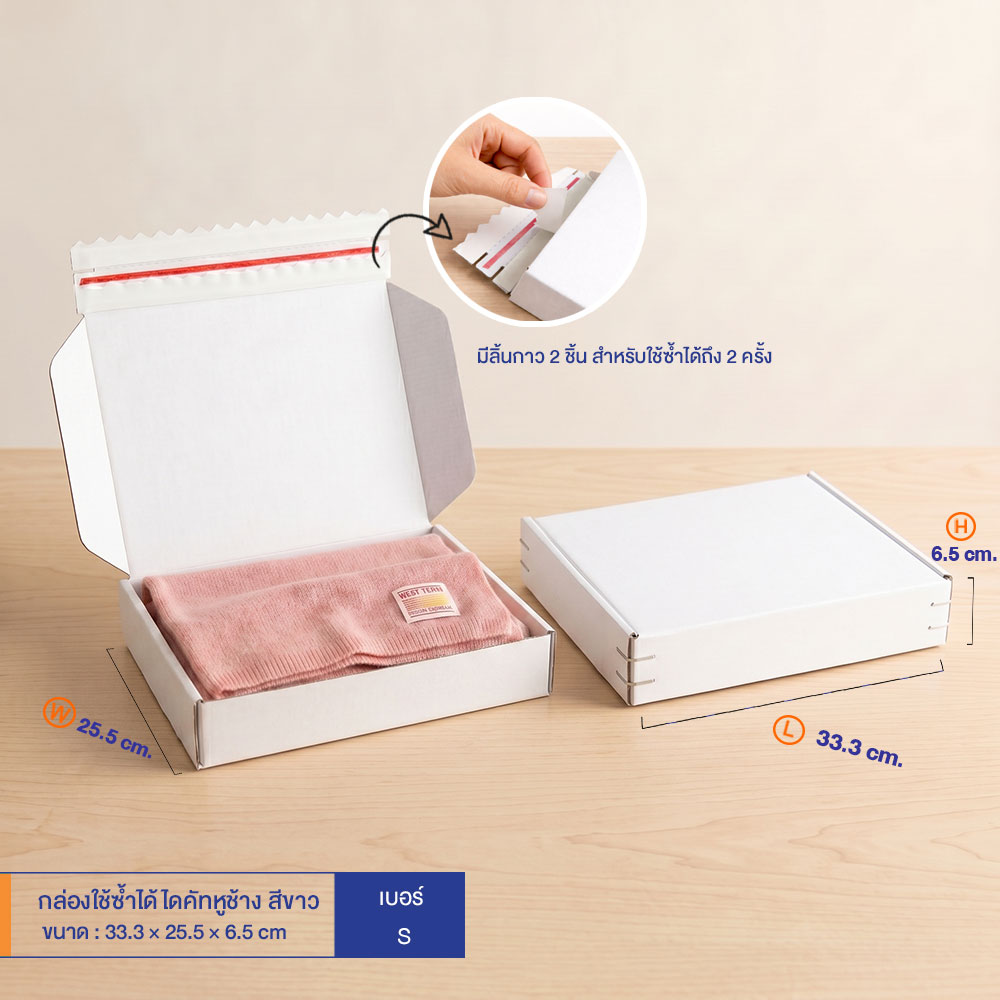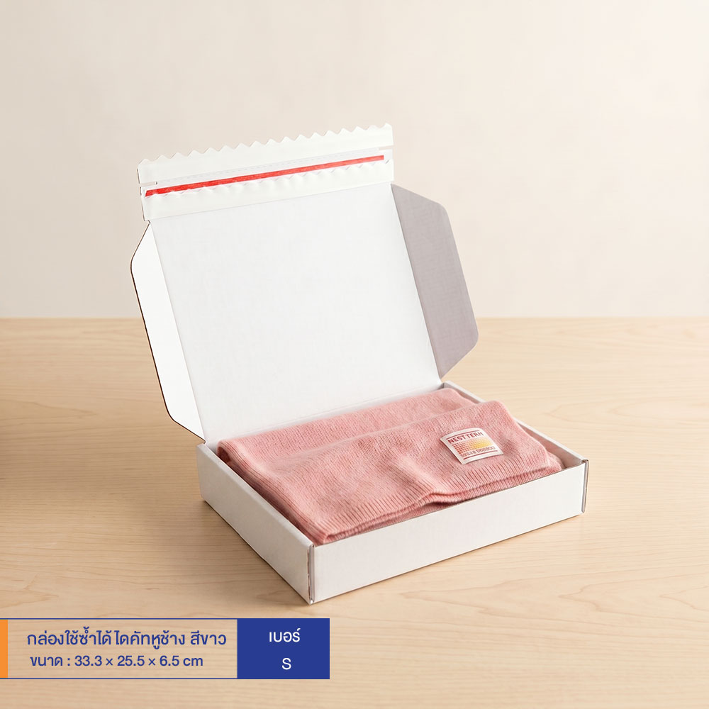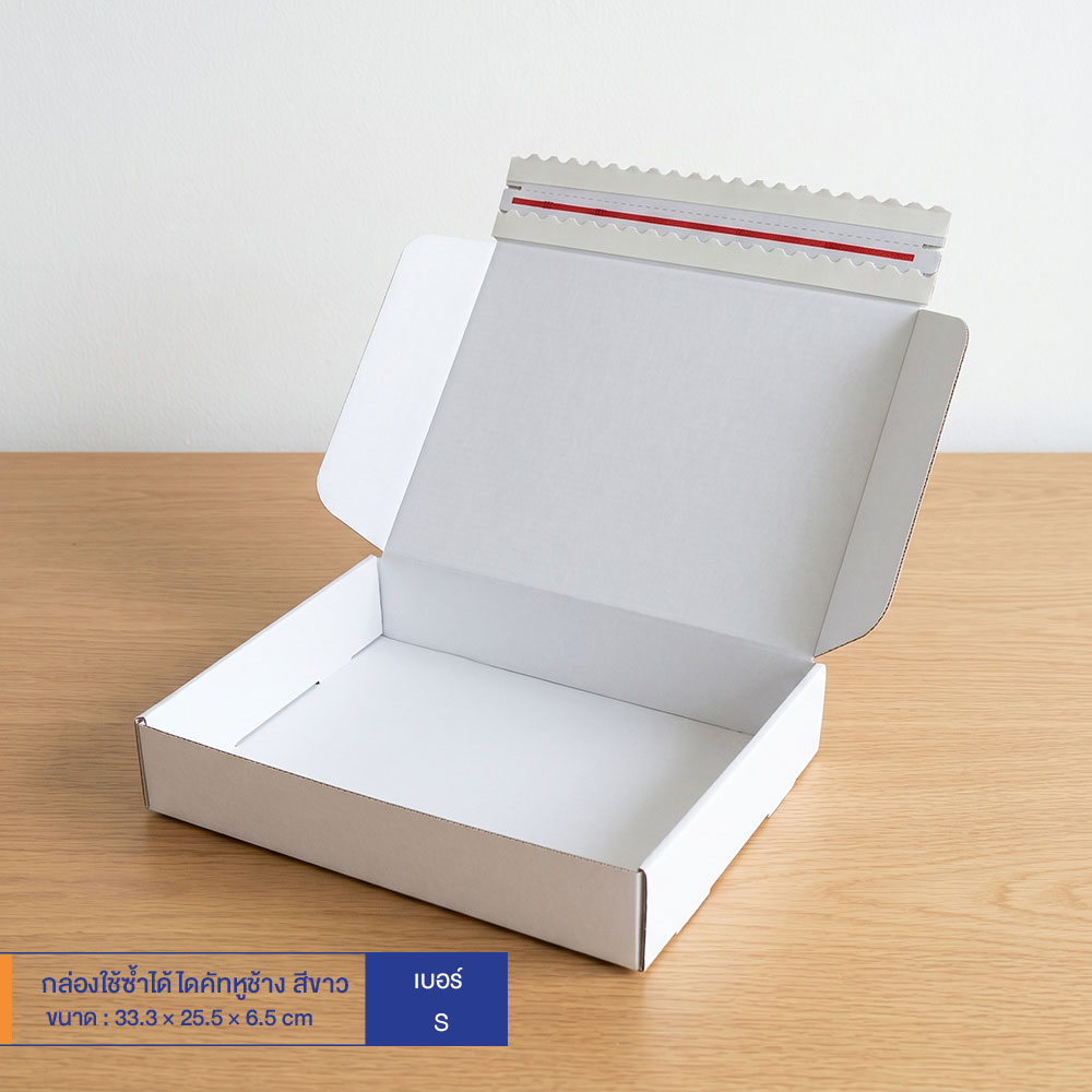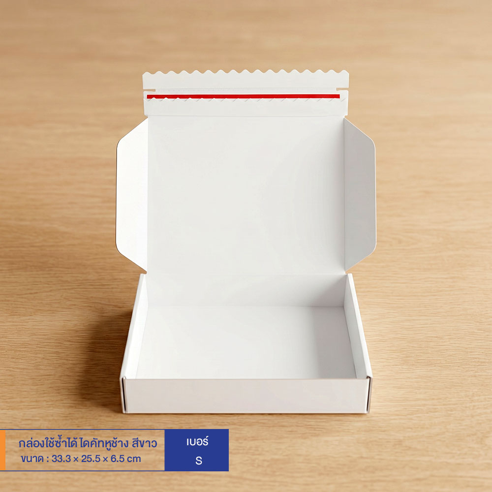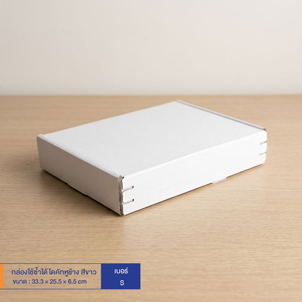 กล่องใช้ซ้ำได้ แบบไดคัทหูช้างสีขาว เบอร์ S (ลอนจิ๋ว)