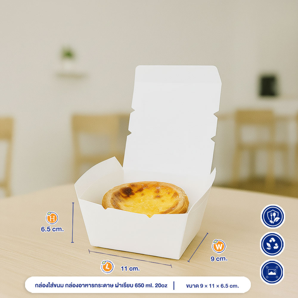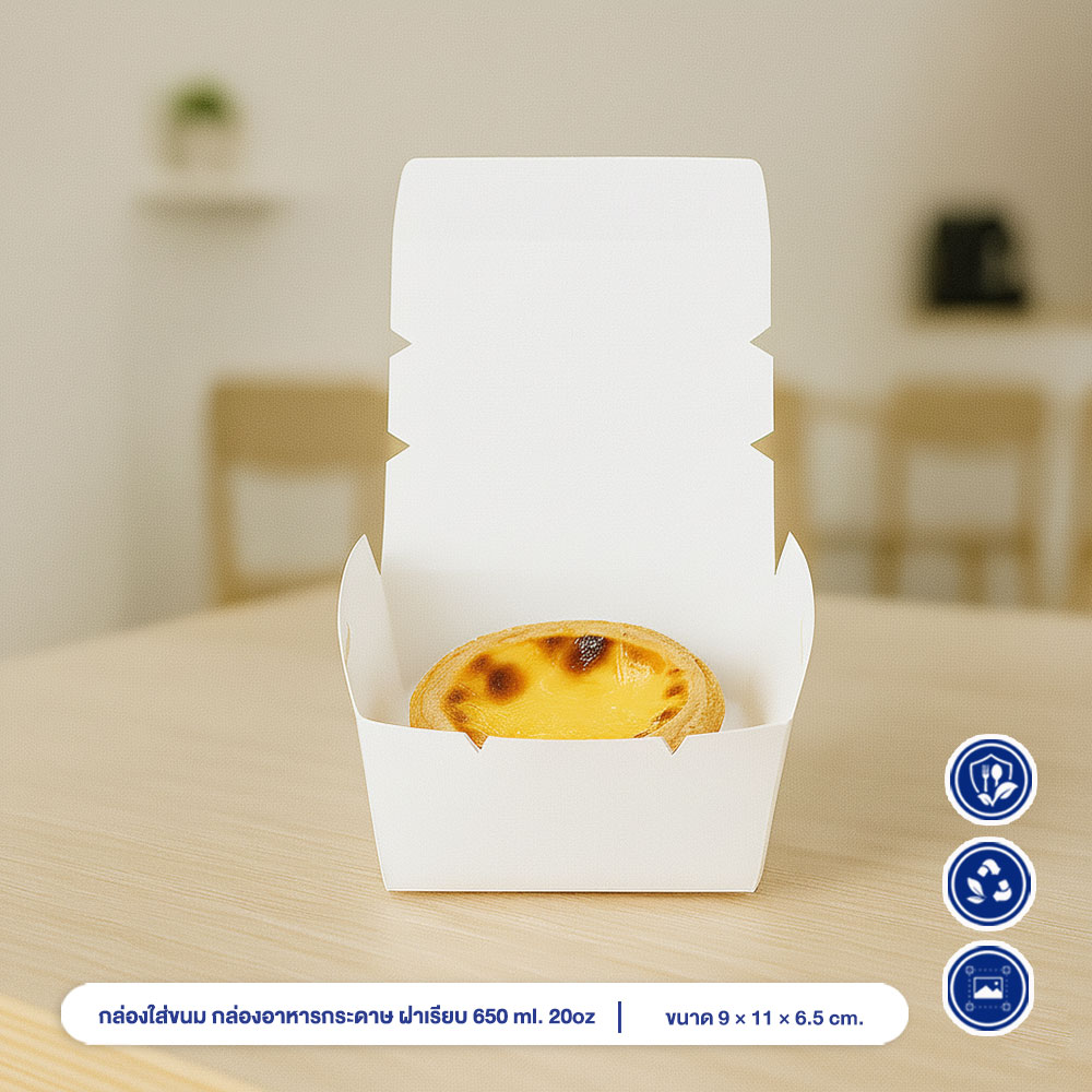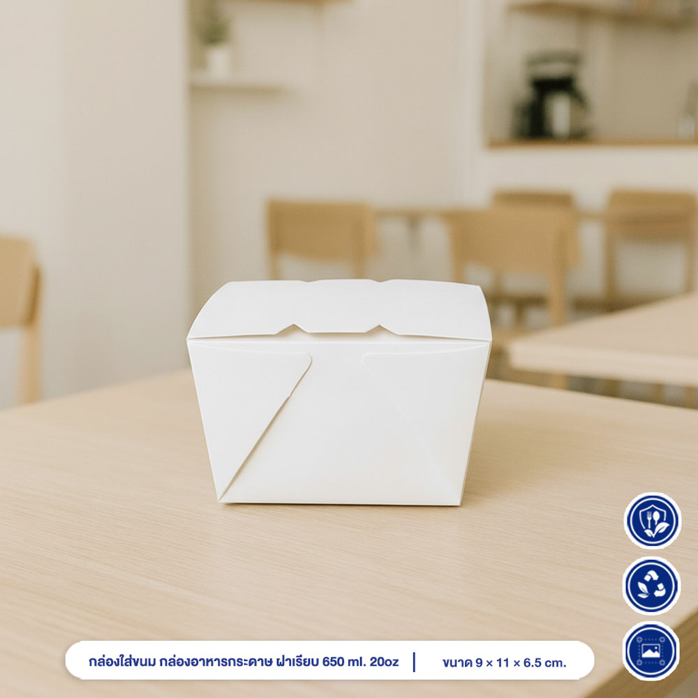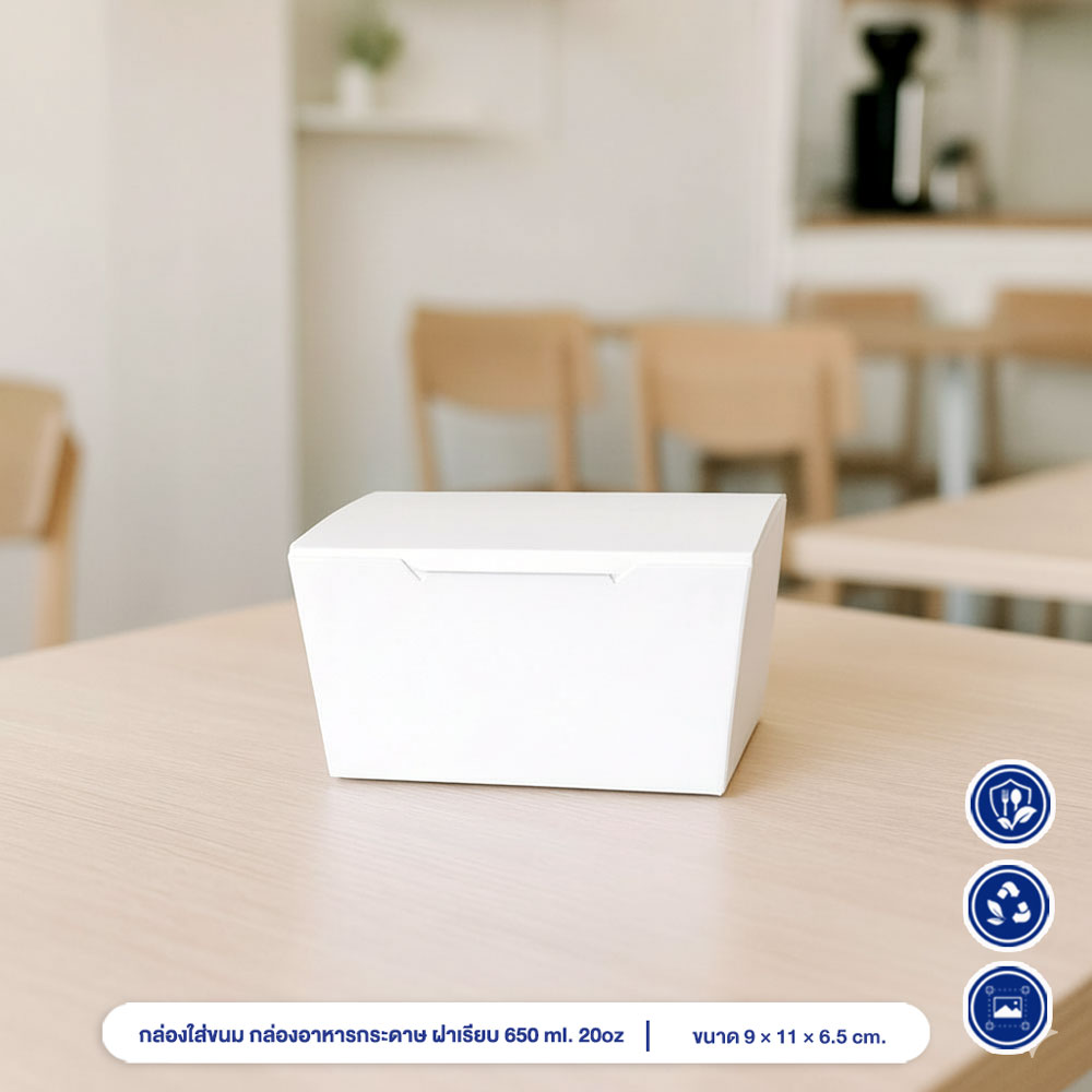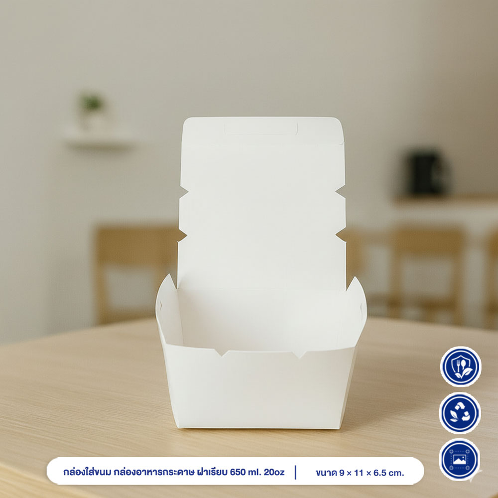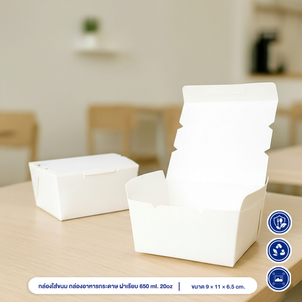 กล่องใส่ขนม กล่องอาหารกระดาษ ฝาเรียบ 650 ml./ 20 oz.