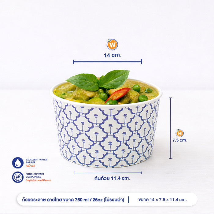 | วัตถุดิบ (Material) | กระดาษ food grade CSP1S/240g+PE18M |