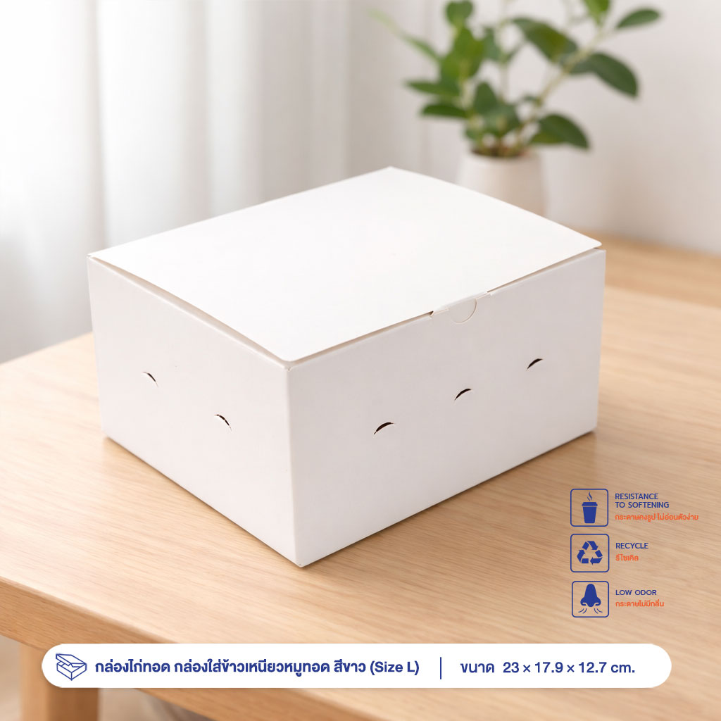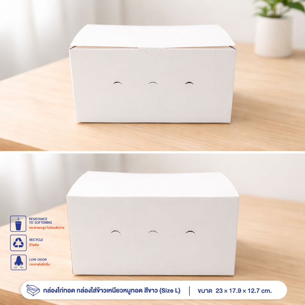 กล่องไก่ทอด กล่องใส่ข้าวเหนียวหมูทอด สีขาว (Size L)
