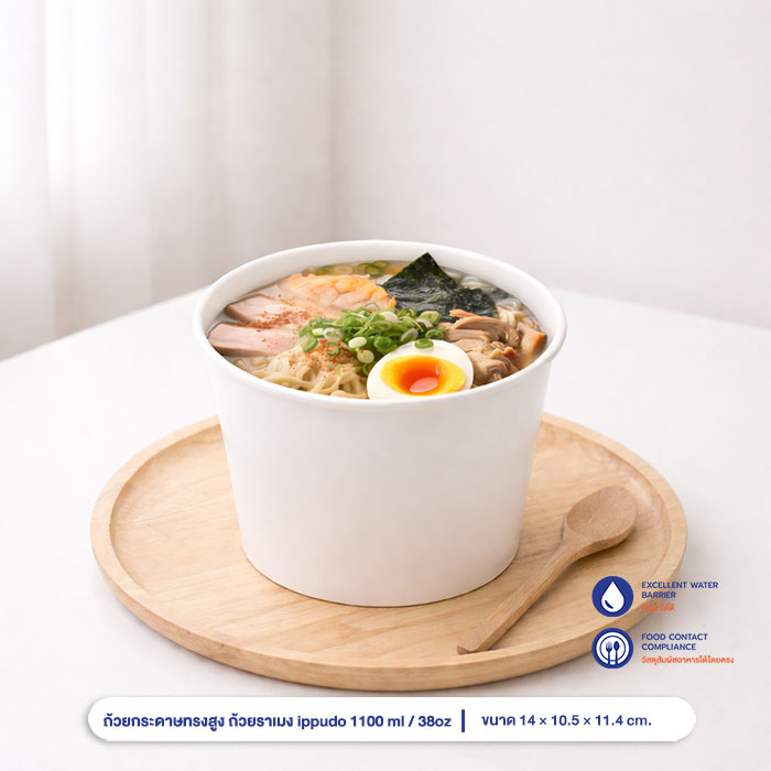 ถ้วยกระดาษทรงสูง ขนาดเดียวกับ ถ้วยราเมง ippudo 1100 ml / 38oz (ไม่รวมฝา)