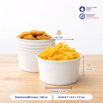 | การใช้งาน | ใช้บรรจุขนมหวาน ไอศครีม ลูกชิ้นทอด ซุปร้อน เหมาะกับผู้ประกอบการ |