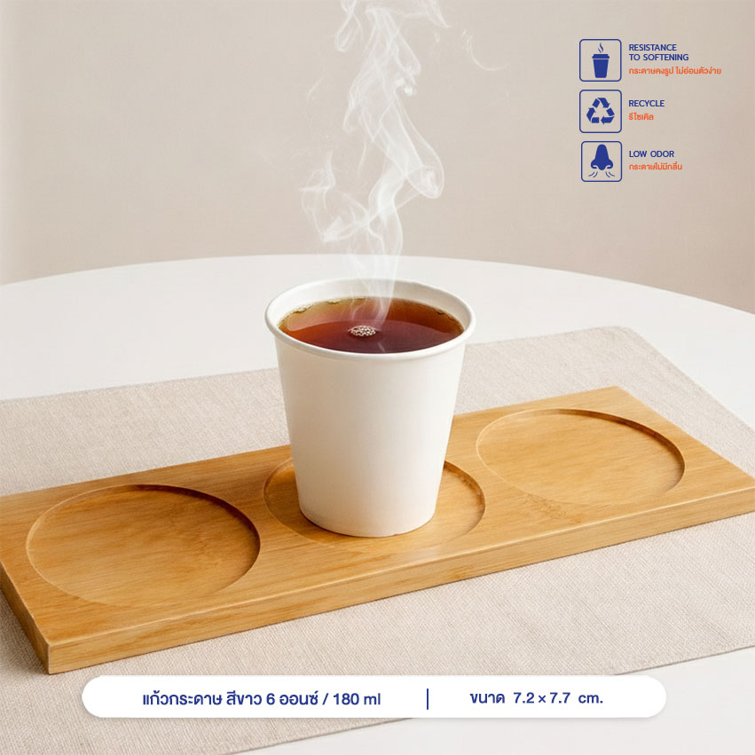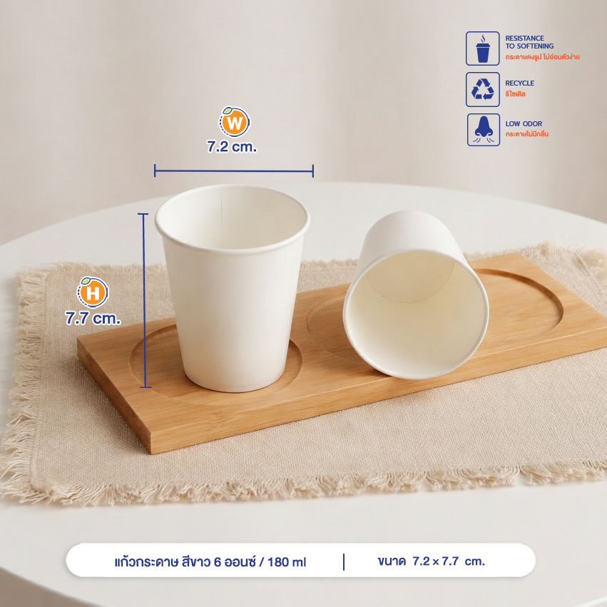 | Product Specifications / มาตราฐานสินค้า | แก้วกระดาษสีขาว 6 ออนซ์( Paper cup 6 oz.) |