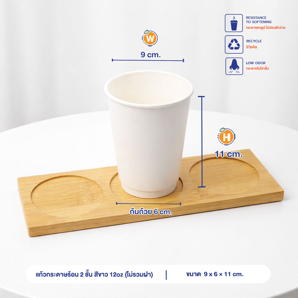 | วัตถุดิบ (Material) | กระดาษทำแก้วใช้ Base paper เคลือบ 1 หน้า หนา 280 แกรม กระดาษหุ้มด้านนอกหนา 270 แกรม |