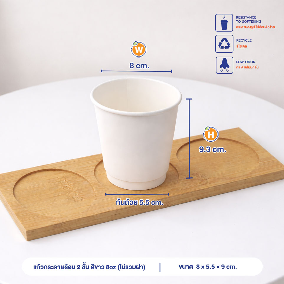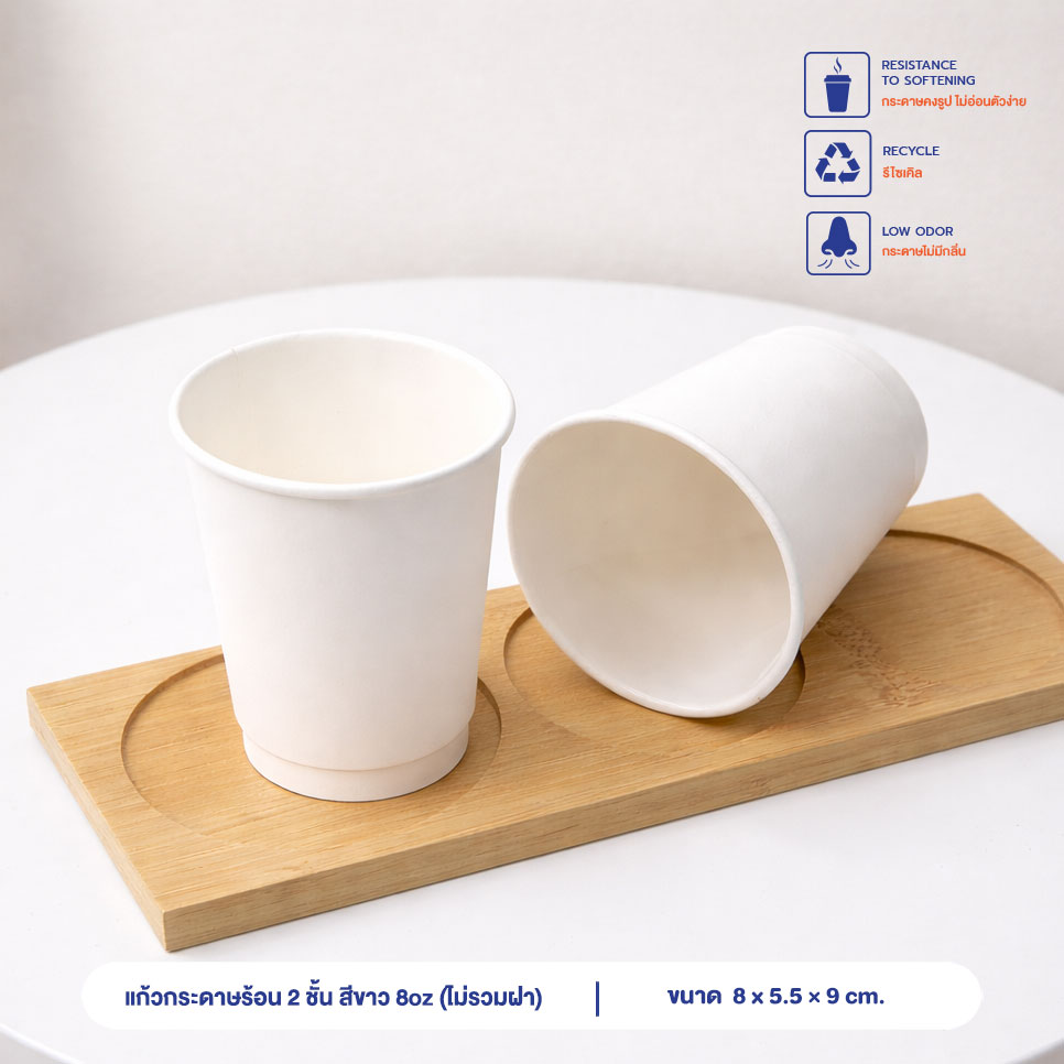 แก้วกระดาษร้อน 2 ชั้น สีขาว 8oz ปากแก้ว 80 มม. (ไม่รวมฝา)