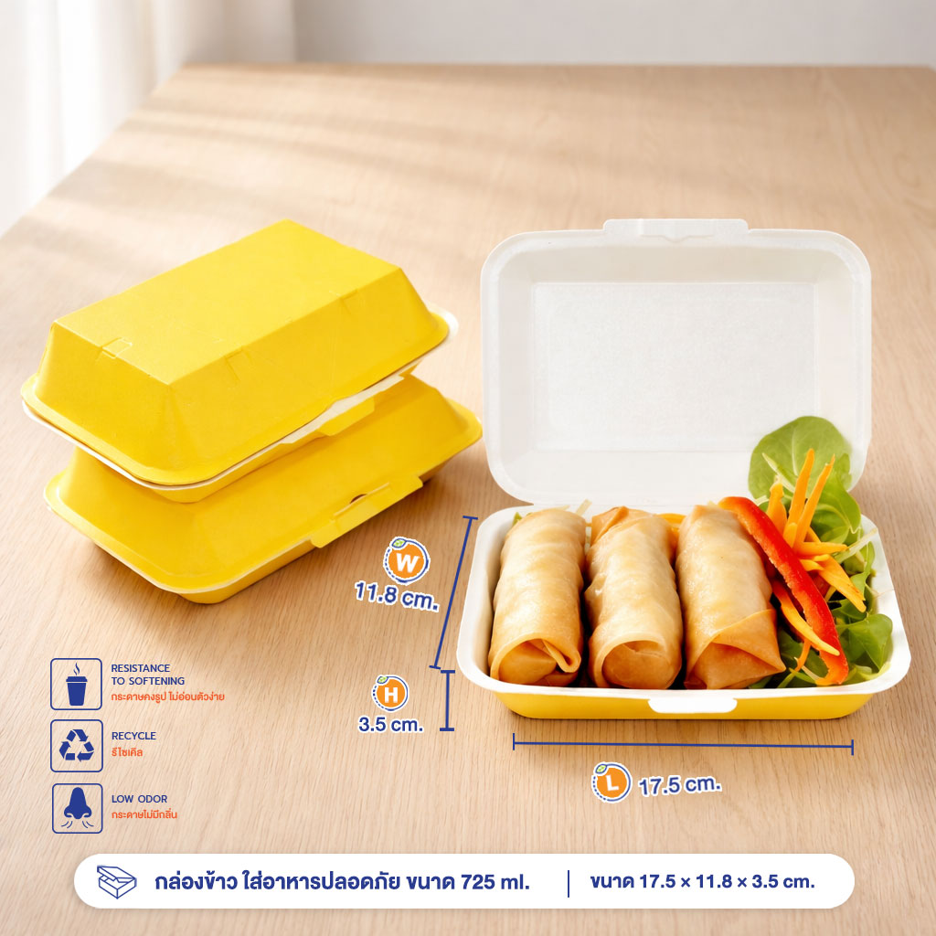 | ใบรับรอง MiT | กล่องกระดาษเคลือบพลาสติกสําหรับบรรจุอาหารขนาด 725 ml |